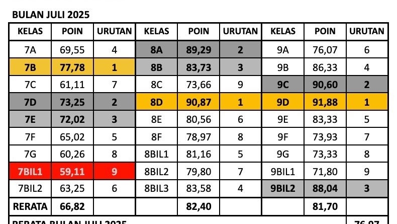 Read MoreNo Kelas Absen NIS Jul Agt Sep Okt Nov Rerata 1 7A 1 252607005 88,89 89,47 94,74 21,74 90,00