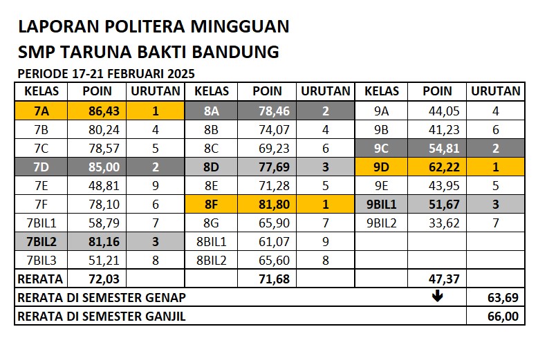 Laporan Poin Literasi (POLITERA) Mingguan Bulan Februari 2025