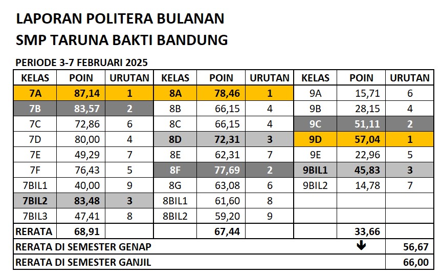 Laporan Poin Literasi (POLITERA) Mingguan Bulan Februari 2025
