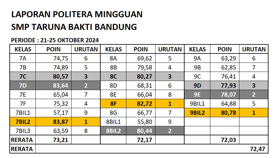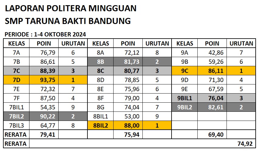 Laporan Mingguan Laporan Poin Literasi (POLITERA) Mingguan Bulan Oktober 2024 October 5, 2024 Admin TIK