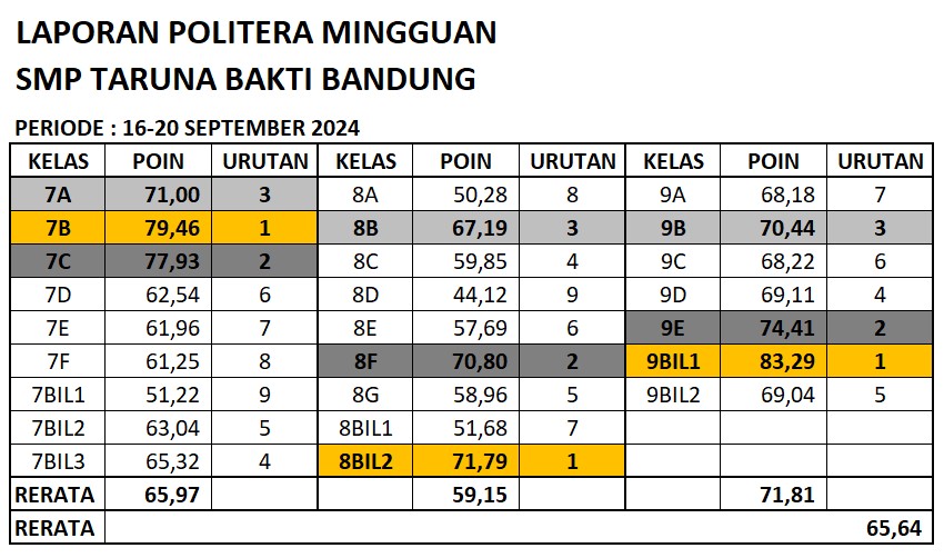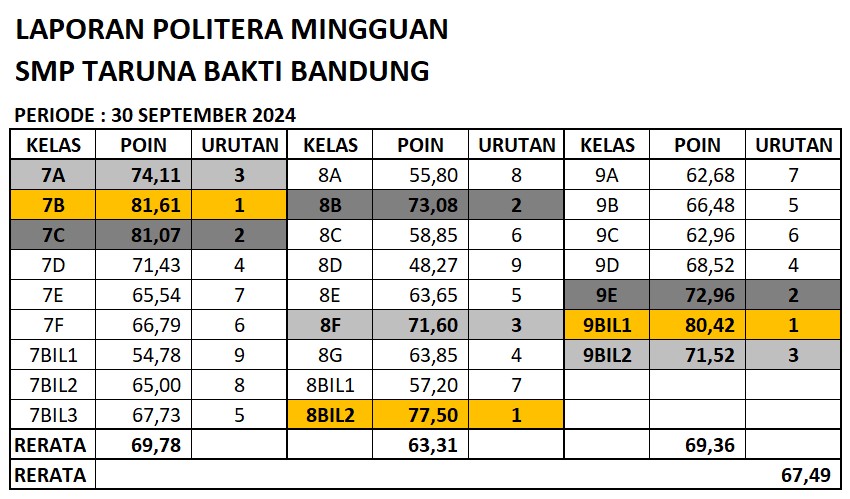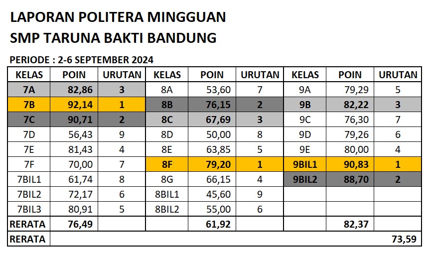 Laporan Mingguan Laporan Poin Literasi (POLITERA) Mingguan Bulan September 2024 October 5, 2024 Admin TIK