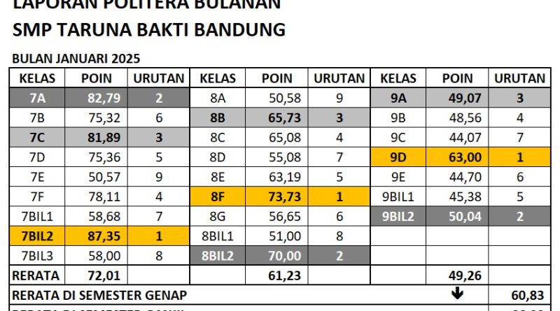 Laporan Poin Literasi (POLITERA) Bulan Februari 2025 Kelas IX SMP Taruna Bakti