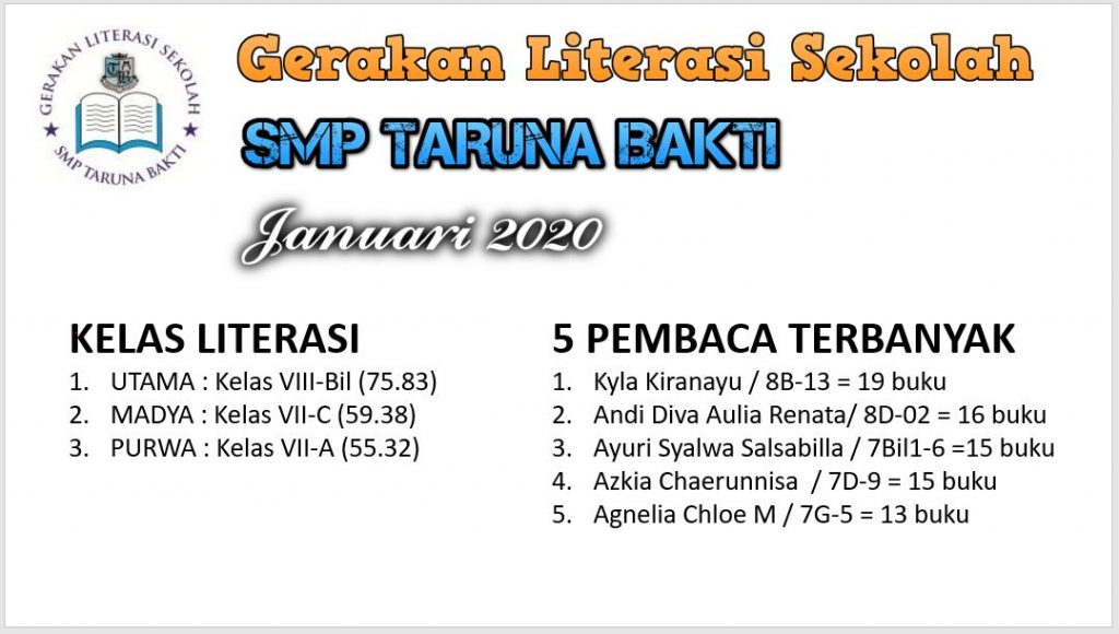 Pengharagaan Siswa dan Kelas Literasi bulan Januari 2020
